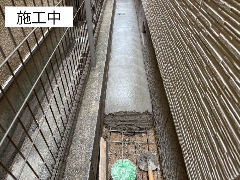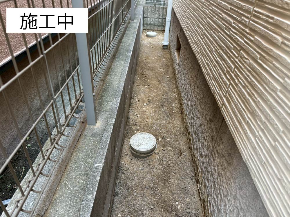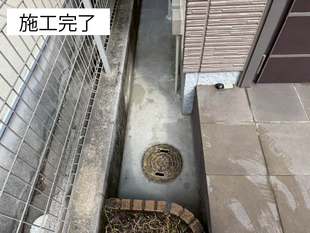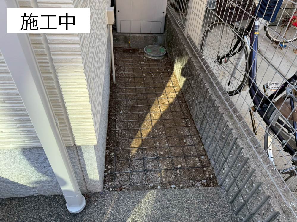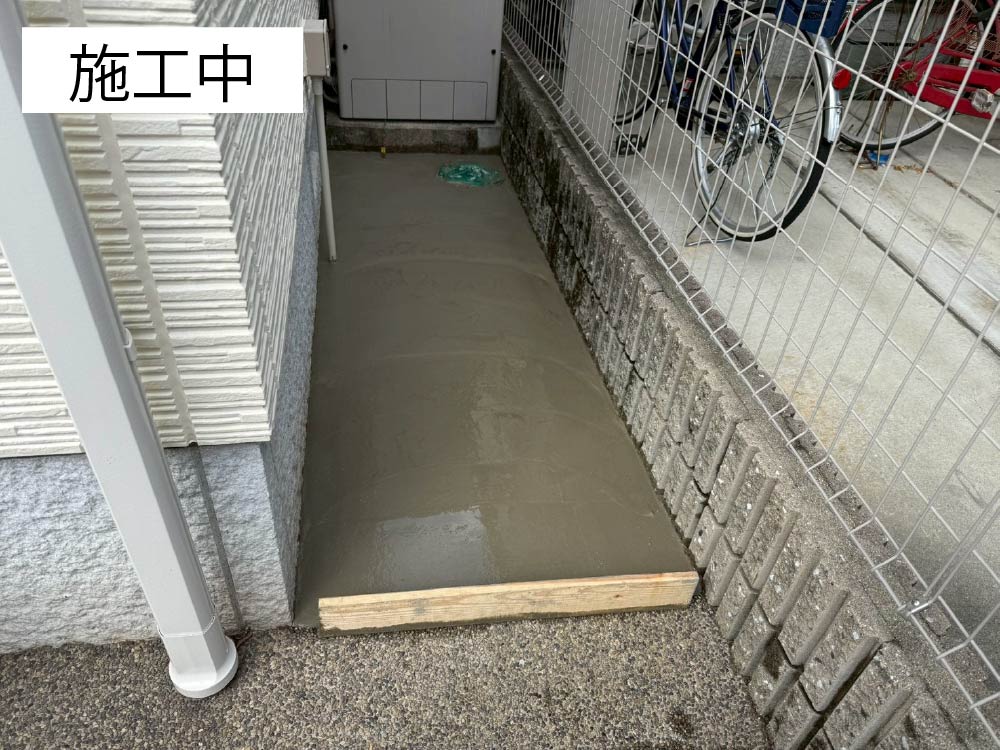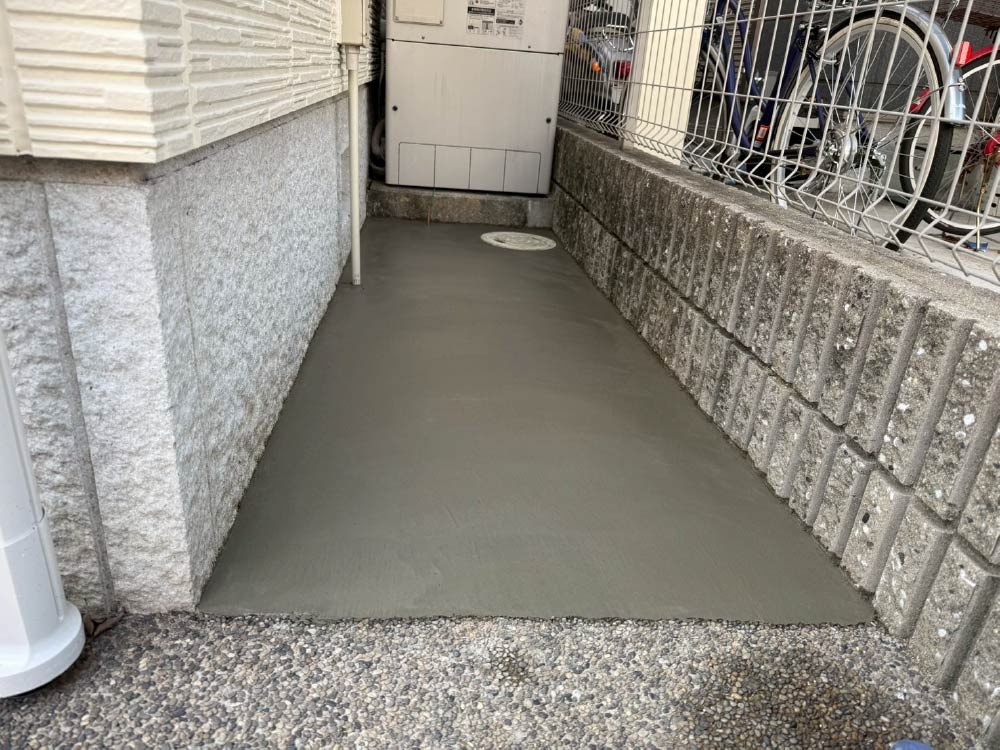 雑草が気になる犬走を土間打ちしてすっきりと仕上げました。