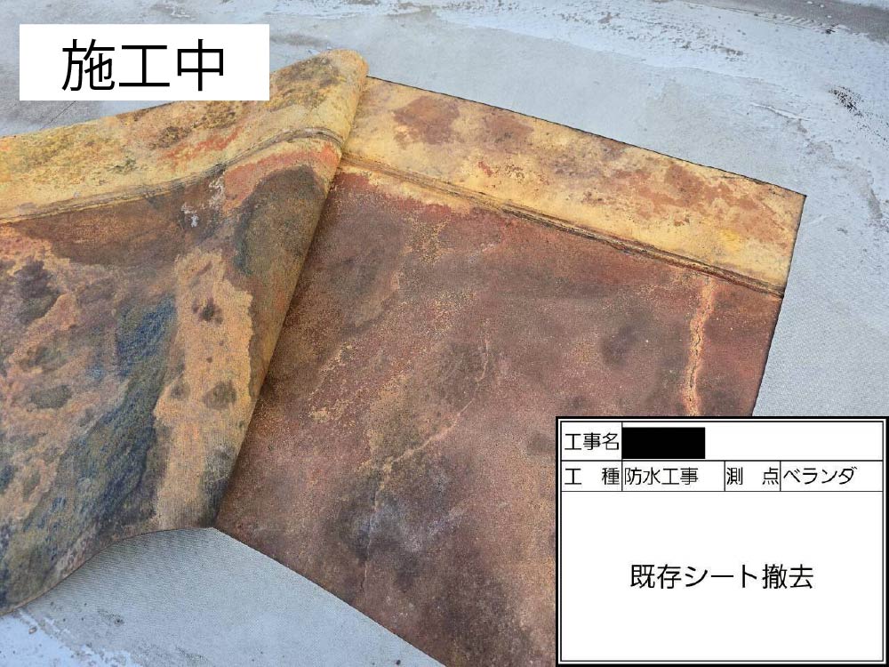 防水が切れ傷みが目立っていた屋上のシートを剥がし、新たに通気緩衝工法により防水を施しました。