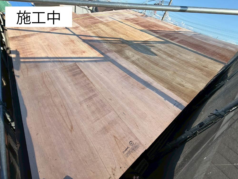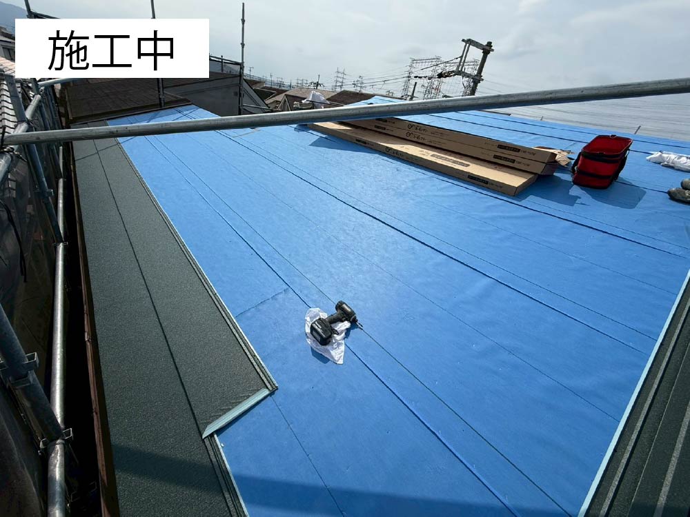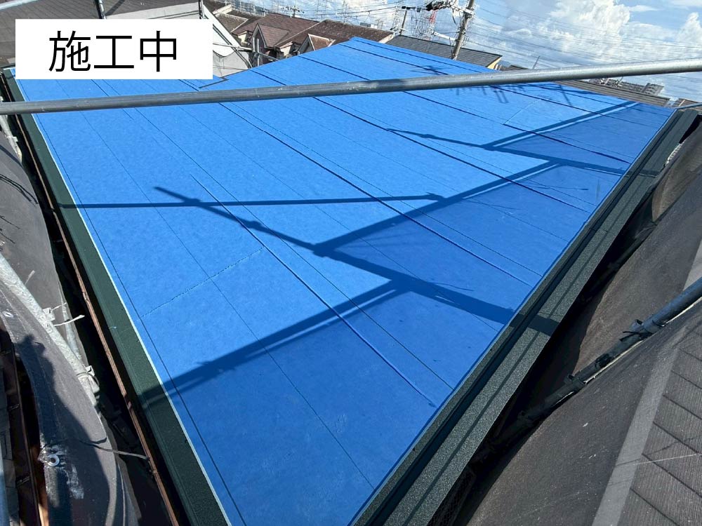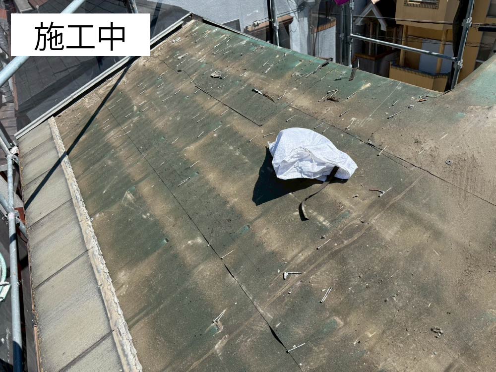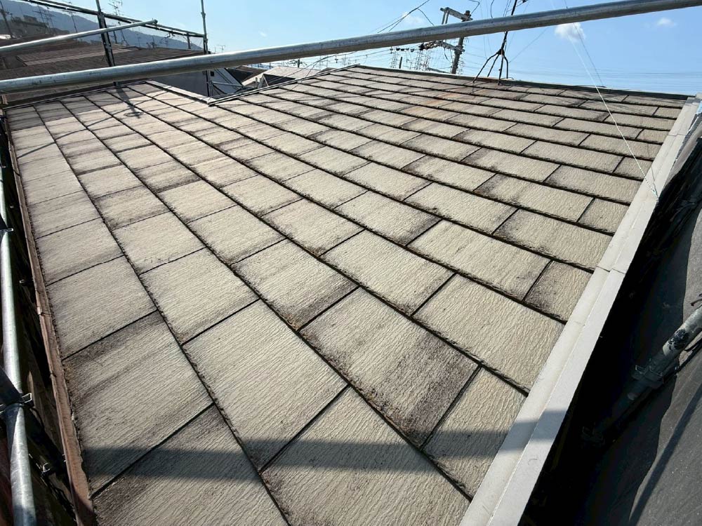 色褪せの目立つスレート屋根をおしゃれなグリーンの屋根材で葺き替えました。