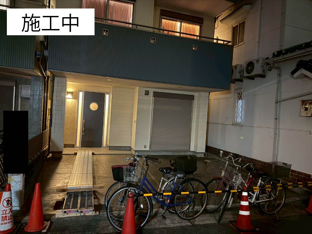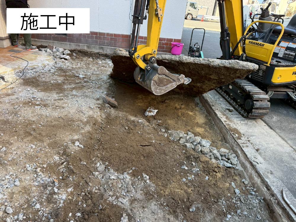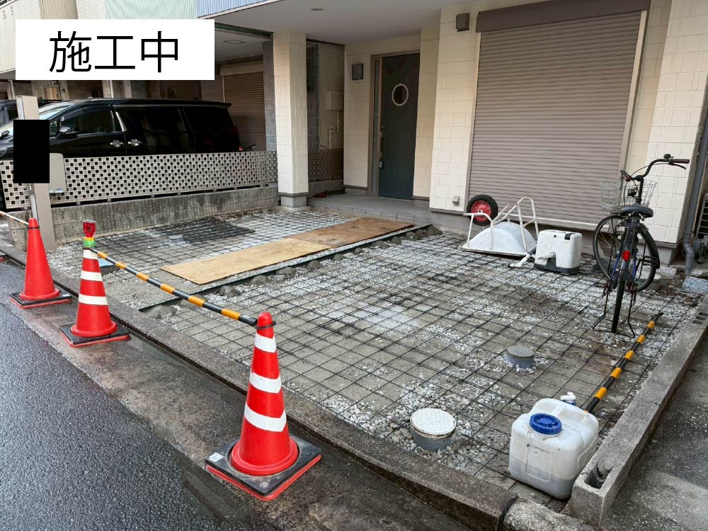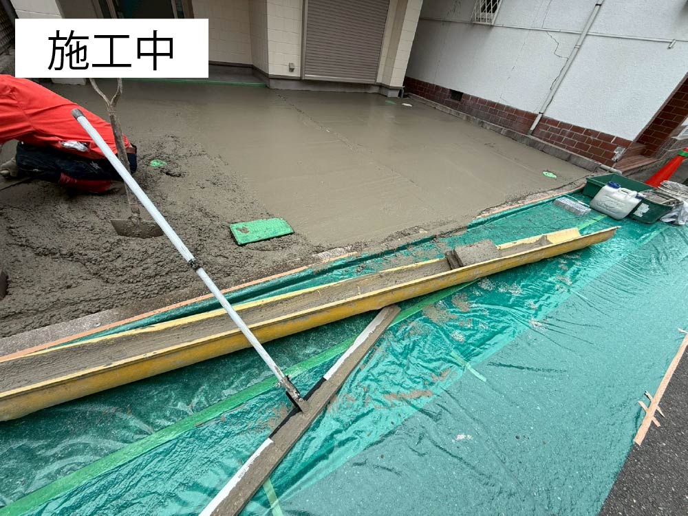 割れてしまっていた玄関前の土間にコンクリートを打ってすっきりと仕上げました。