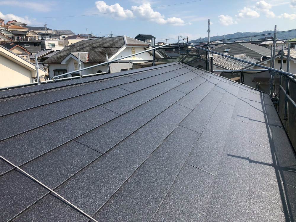 大屋根・下屋根ともにカバー工法で美しく仕上げました。