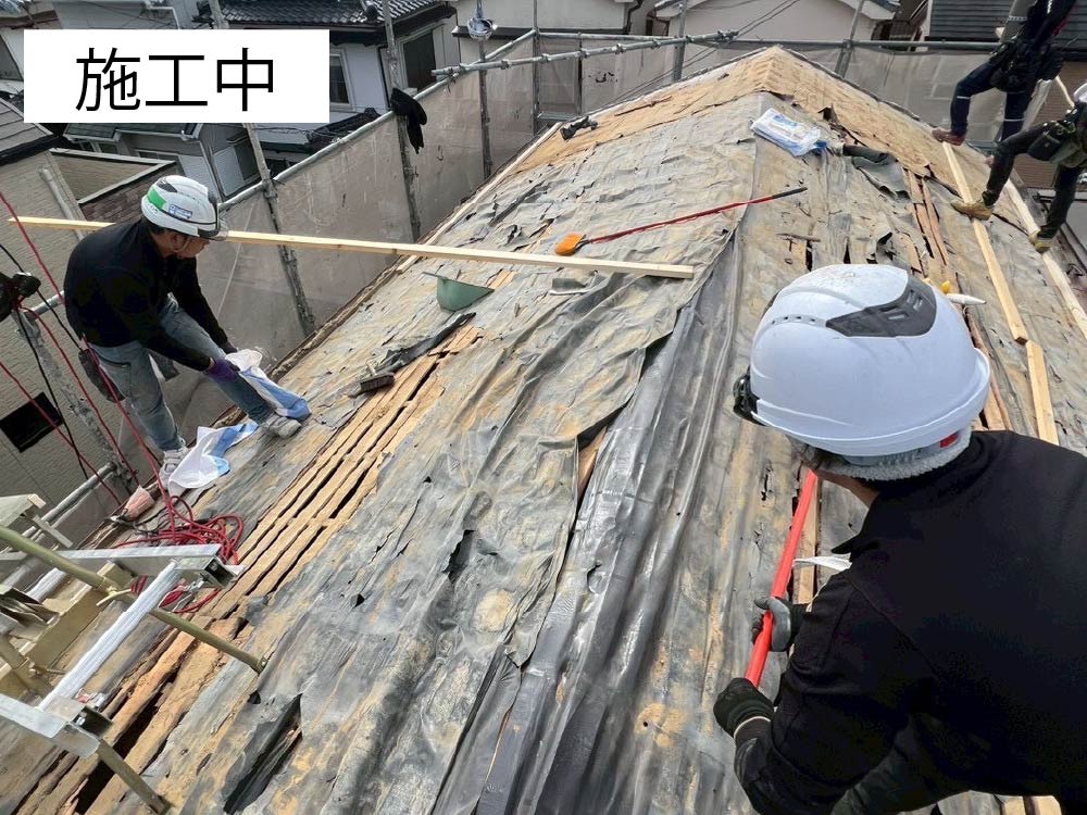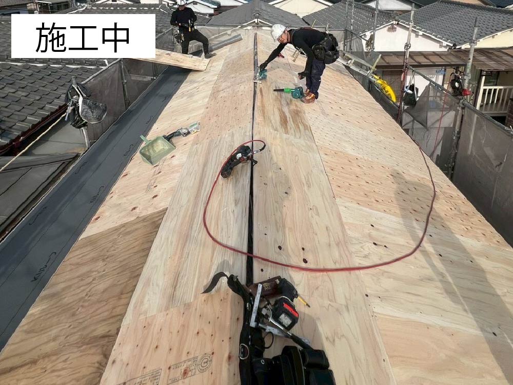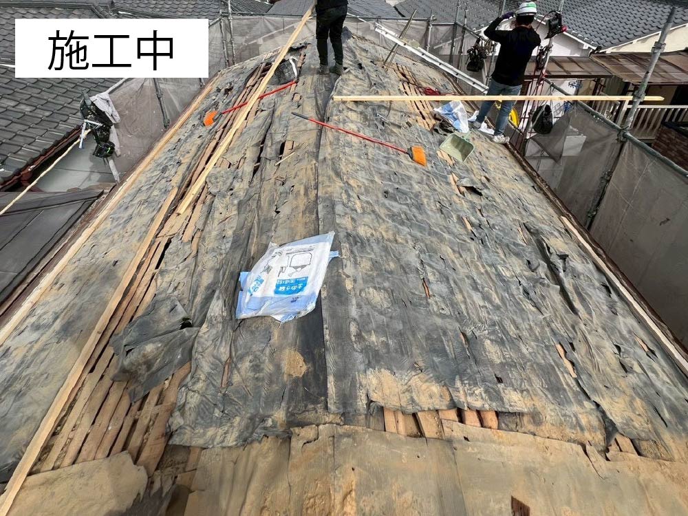 築50年の屋根瓦をおろし、軽量かつ丈夫な金属屋根に葺き替えました。