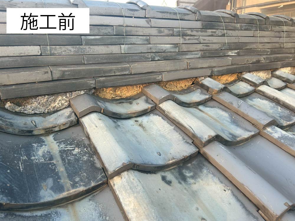 劣化していた漆喰を撤去し詰め直す工事を行いました。